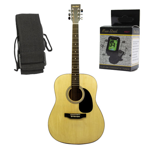 Description Main Street AG41 41-Inch Acoustic Dreadnought Guitar In Natural Matte Finish Features Linden (Basswood) Top Linden (Basswood) Painted...